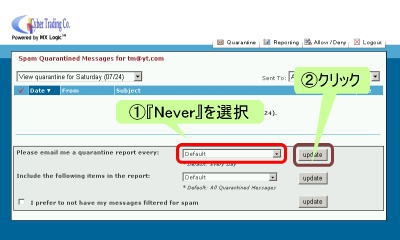 スパム検疫レポートの配信を停めるには
