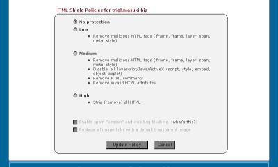 HTMLフィルタ設定(HTML Shield)