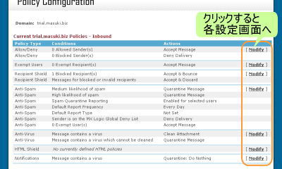 『Anti-Spam』『Anti-Virus』ではそれぞれ、スパムフィルタとウィルスフィルタの動作を設定できます。