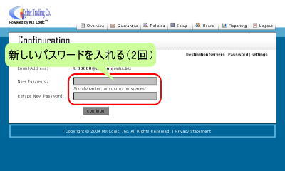 両方の入力欄に設定したいパスワードを入れて、『continue』をクリックします。