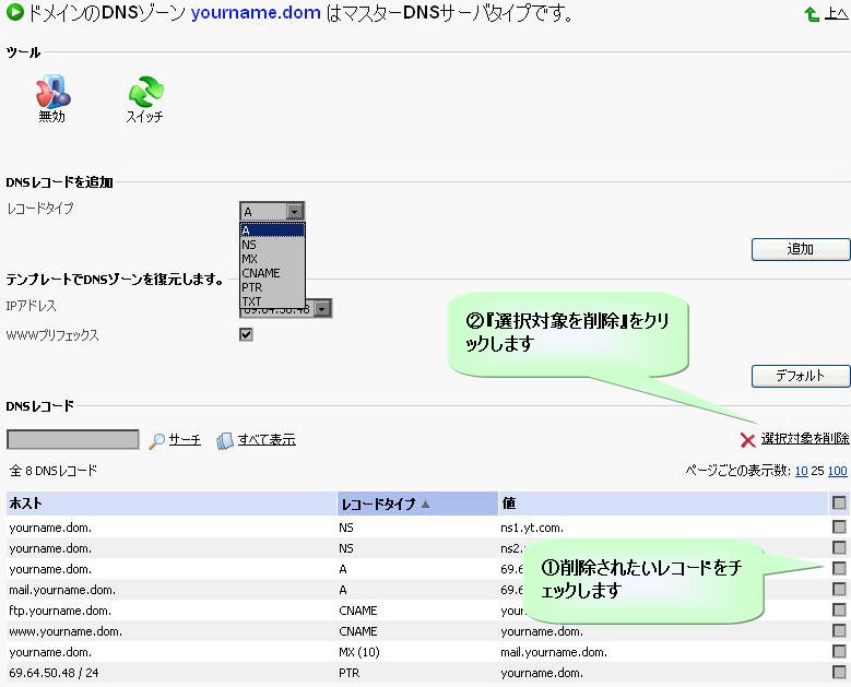 上記ネームサーバ設定を(変更後)およそ数時間程度で、ネット上で、弊社DNSコントロールパネルの操作が直に反映されるようになります。 弊社で取得管理しているドメインであれば、ドメイン管理画面より変更できます。