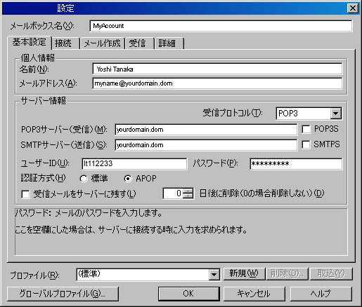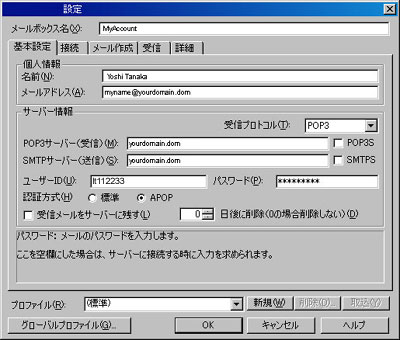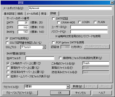 初回起動時に設定ダイアログが表示されます。 「基本設定」タブでは上記を参考に設定します。 「詳細」タブをクリックします。