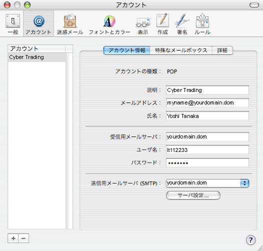 上記を参考に設定します 『サーバ設定」をクリックします。