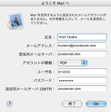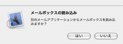 他のメールソフトから既存のメールボックスをインポート(読み込み)するか確認されます。任意に作業してください。 ここではメールボックスのインポートを行わないことにします。