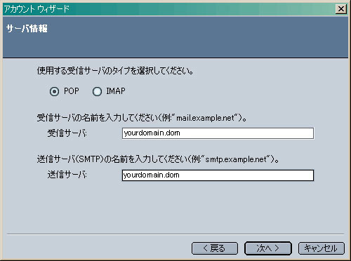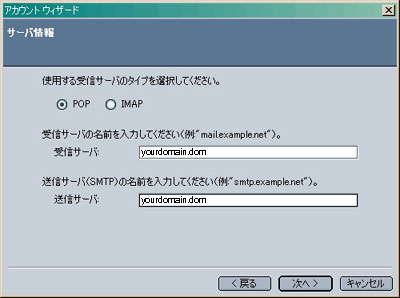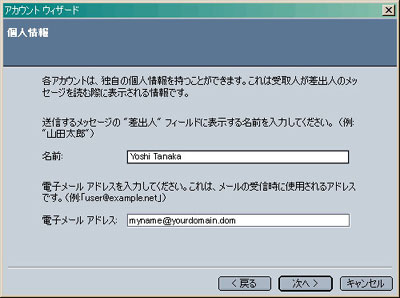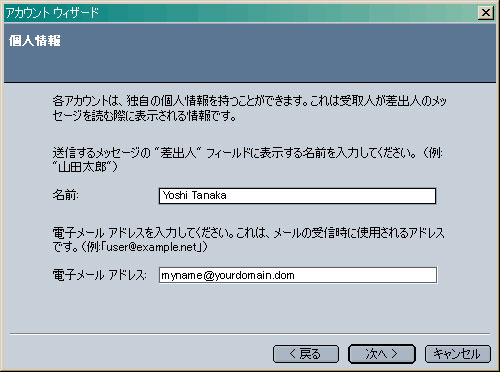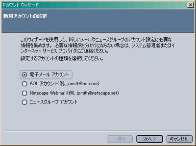 「電子メールアカウント」を選択し、「次へ」をクリックします。 個人情報