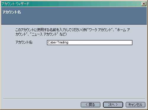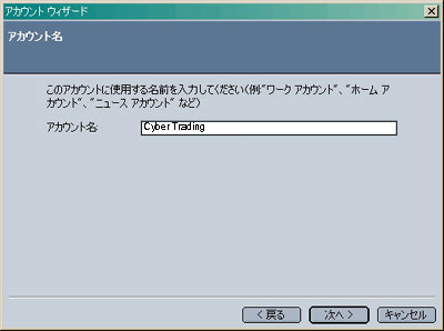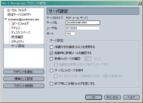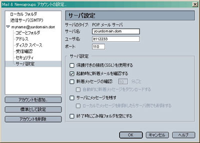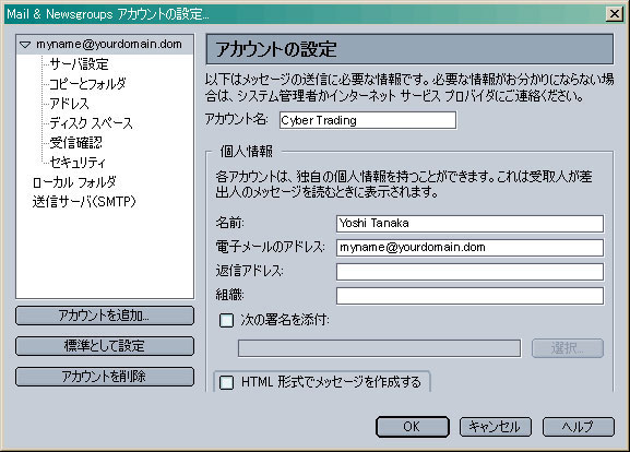 画面左枠の「▼作成したアカウント名」をクリックし、上記を参考に設定します。