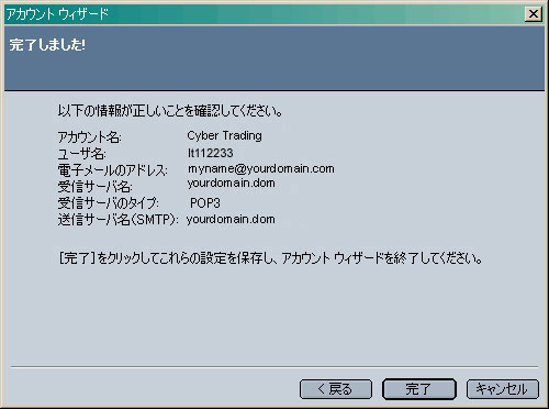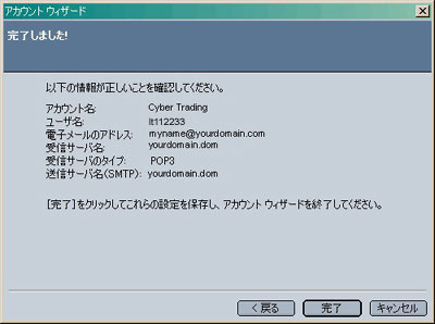内容を確認します。 「完了」をクリックします。