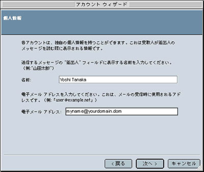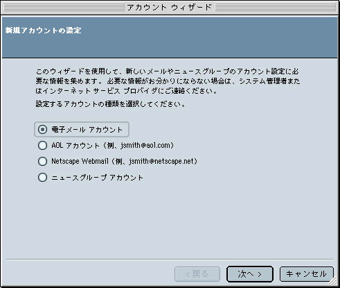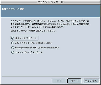 「電子メールアカウント」を選択し、「次へ」をクリックします。 個人情報