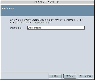 画面左枠の「▼作成したアカウント名」をクリックし、上記を参考に設定します。
