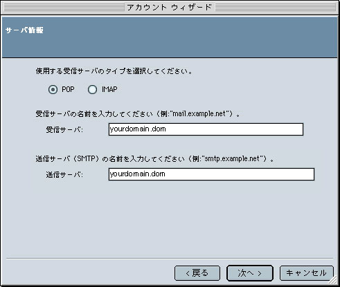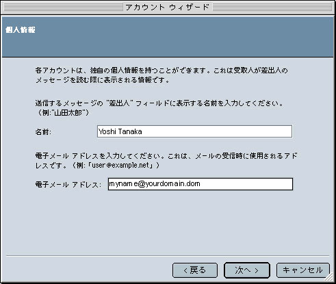電子メールアドレス [お客様のメールアドレス] (例:myname@yourdomain.dom.)