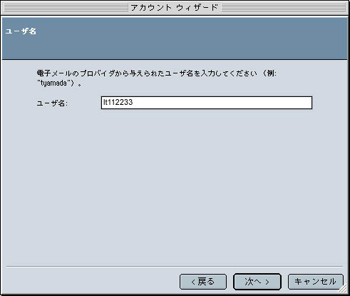 ユーザ名 「設定したアカウント名」 (例:lt112233)
