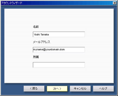 上記を参考に設定し、「次へ」をクリックします。