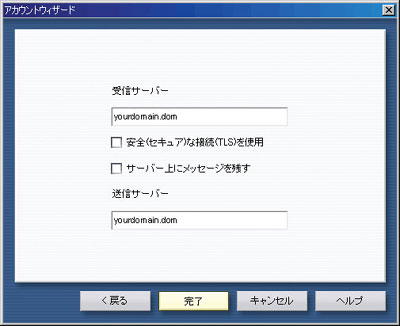 上記を参考に設定し、「完了」をクリックします。