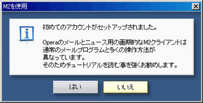 「セットアップ完了」が表示されます。ここでは「いいえ」をクリックします。