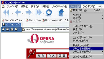 「メール」メニューから「アカウントの編集」をクリックします。