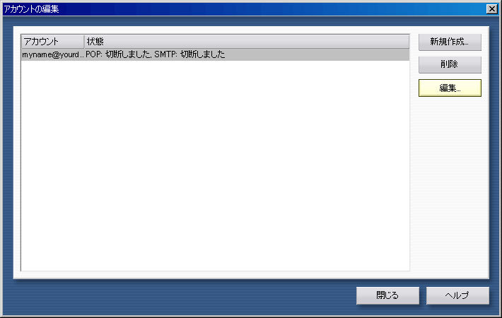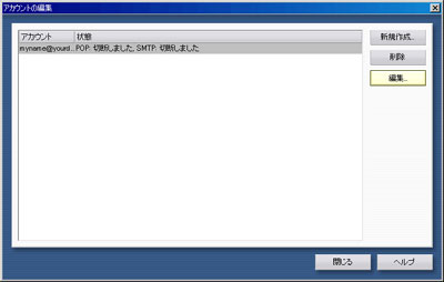 既存のメールアカウントを選択し、「編集」をクリックします。