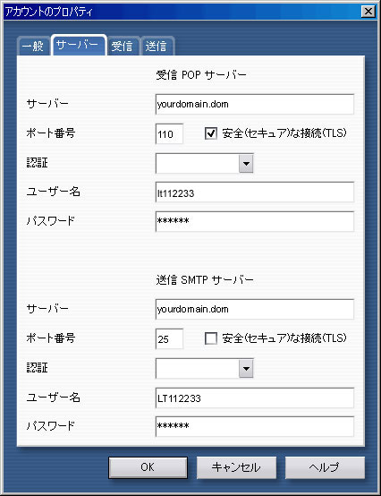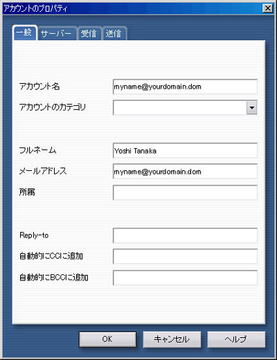 「サーバー」タブをクリックし、上記を参考に設定します。