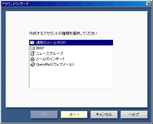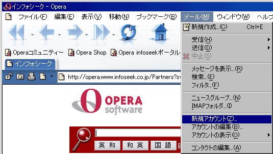 「メール」メニューから「新規アカウント」をクリックします。