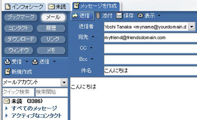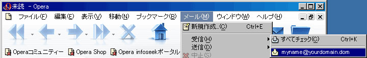 「メール」メニューから、「受信」⇒「既存のメールアカウント」をクリックします。