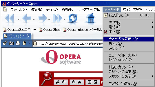 「メール」メニューから「メッセージを表示…」をクリックします。