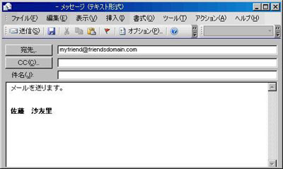 テストメールを送信する場合は、「宛先」へ自分のメールアドレスを設定し送信します。 次に受信作業を行い、テストメールを受信していれば、成功です。