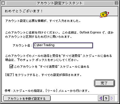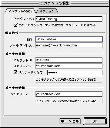 設定ガイド:Macintosh Outlook Express 5.02 新規作成/削除 [標準設定]