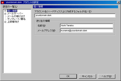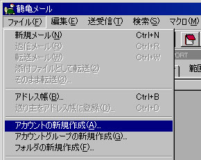 「ファイル」メニューから「アカウントの新規作成」をクリックします。 |