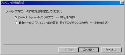 「OutlookExpressのやり方で」を選択し、「次へ」をクリックします。 |