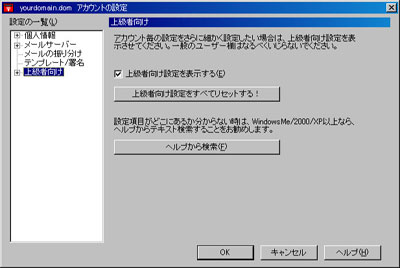 「設定一覧」から「上級者向け」を選択し、上記を参考に設定します。 |
