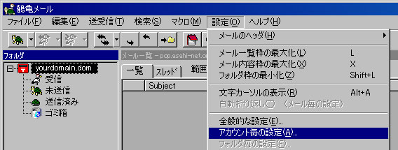 「設定」メニューから「アカウント毎の設定」をクリックします。 |