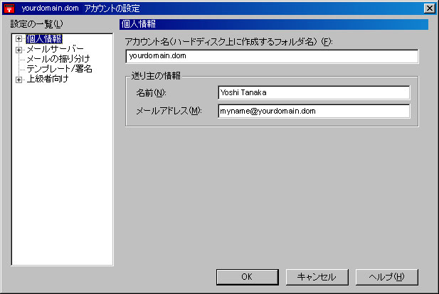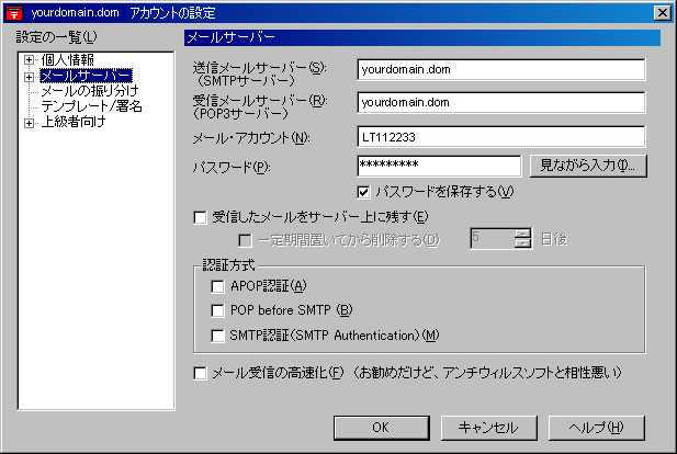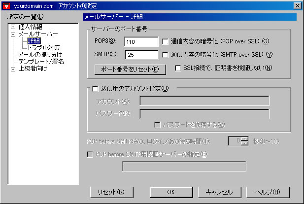 「メールサーバー」から「詳細」を選択し、上記を参考に設定します。 以上で設定は完了です。 |