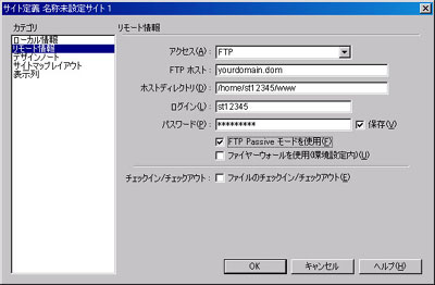 DreamWeaver 4.xを利用し、ホームページデータをアップロード(転送)するための設定や削除する方法がご確認いただけます。