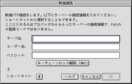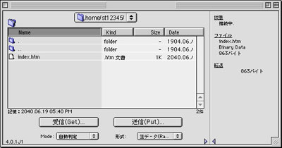 Fetch 4.x(日本語版)を利用し、ホームページデータをアップロード(転送)するための設定や削除する方法がご確認いただけます。 ここでは、Fetch4.0.1J1を基に説明しています。