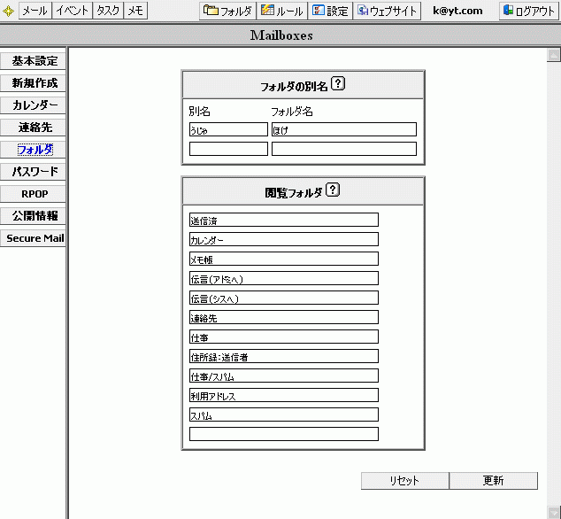 メールトップご案内各種変更ご利用料金独自ドメインメール機能マニュアル