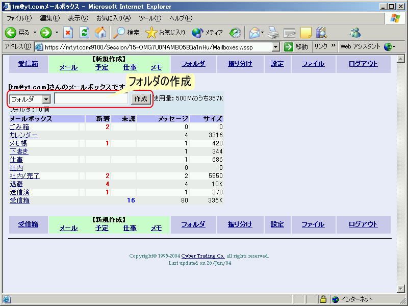 フォルダの種類を選択し、新規フォルダの名称を入力して『