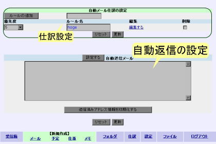 既に自動返信が機能している場合、『設定する』ボタンの変わりにチェックボックスが表示されます。この場合、設定変更は『更新』ボタンをクリックしてください。