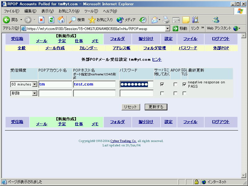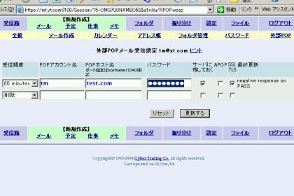 このウェブメールには、外部のメールボックスからPOPを利用してメールを受信する機能があります。