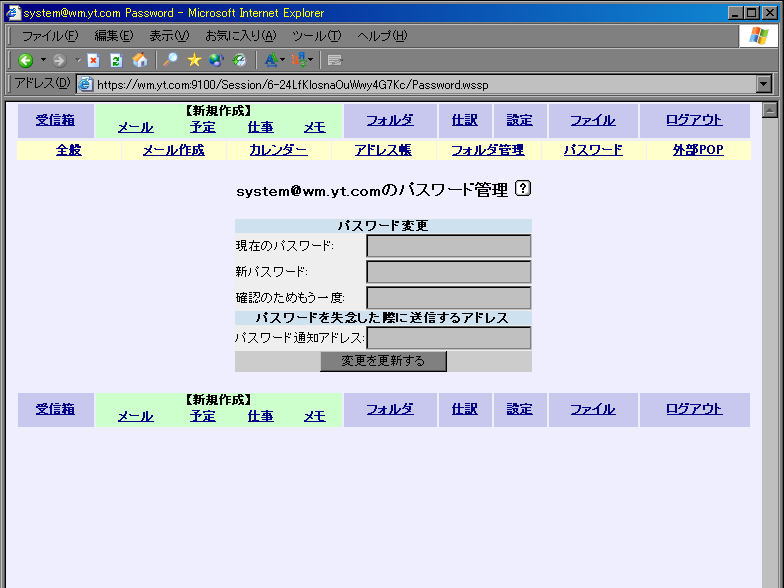現在のパスワードと、新規に設定したいパスワードを2度入力し、『変更を更新する』をクリックすると、パスワードが変更されます。
