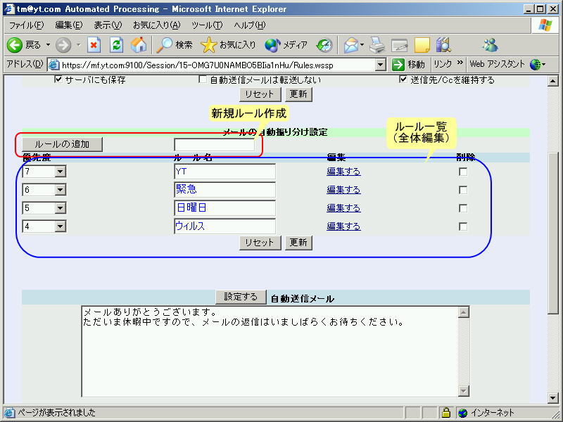 送信者が regist@y7.com か billing@y7.com | YT フォルダに入れ、受信箱には入れない(Discard) |