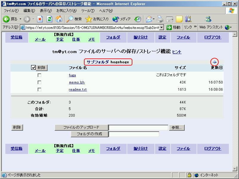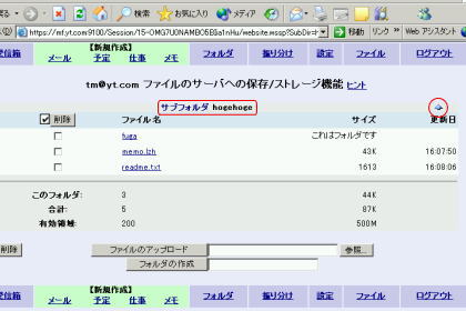 サブフォルダ名と、上位フォルダへ表示を戻すためのが表示される以外には、上に説明したトップフォルダの際と機能は変わりません。