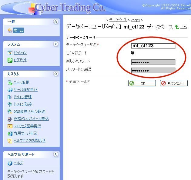 データベースのパスワード 』 に変更し、保存します。