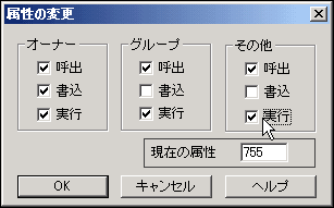 CGIファイルの属性を変更し、実行可能にします。