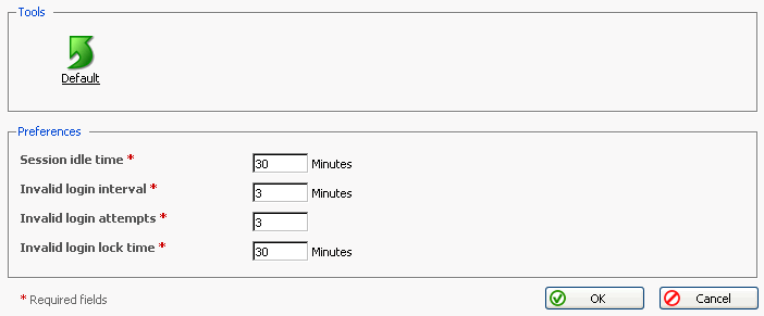 無効なログイン試行:不正なログインの試みを許容する回数です。この値を越えて不正な(間違った)ログイン情報を入力したユーザは、不正ログインロック時間で指定された時間の間システムにログインすることができなくなります。