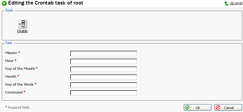 タスクが実行される日時を指定してください:分 - 0 から 59 の値、または * を入力してください。時 - 0 から 23 までの値、または * を入力してください。日 - 1 から 31 までの値、または * を入力してください。月 - 1 から 12 までの値、または * を入力してください。曜日 - 0 から 6 (0が日曜日です) までの値、または * を入力してください。