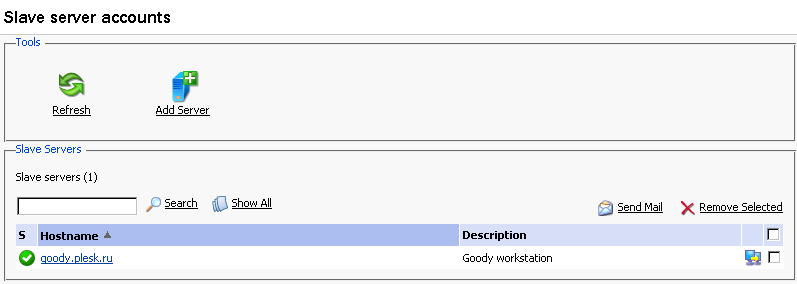 Plesk管理者はスレーブサーバのさまざまな管理タスクを少しのクリックで効率的に行うことができます。スレーブサーバ管理機能を使用するには、管理者としてログインし、ナビゲーションペインのマスターショートカットをクリックしてください:新しいスレーブサーバを登録する、スレーブサーバアカウントを編集する、スレーブサーバにログインする.