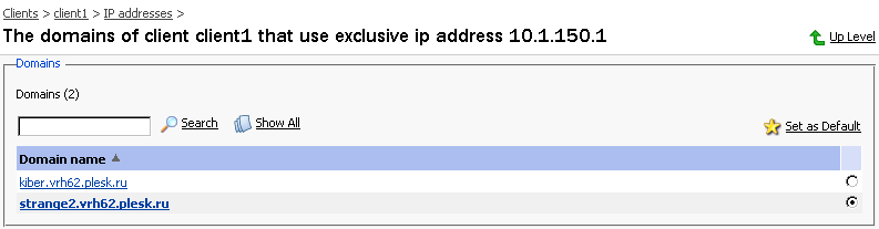特定のIPアドレスを使用してホスティングを設定したドメインを閲覧できます。専用IPアドレスにデフォルトドメインを設定することもできます - ユーザがブラウザまたは解決できないドメインでこのIPアドレスを指定すると宛先となるドメインです。