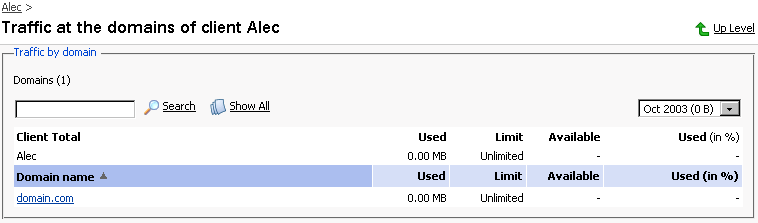 このテーブルで表示されているデータはクライアントおよびそのドメインによって使用されたトラフィック量です。