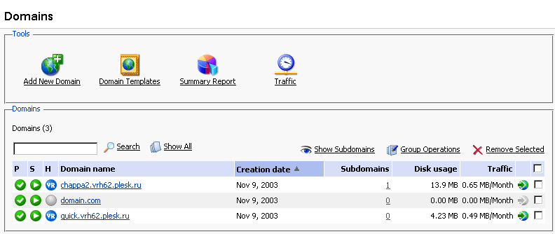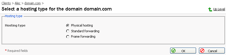 Pleskを使用すると、以下の3つのタイプのホスティングサービスのなかから1つを選択することができます: