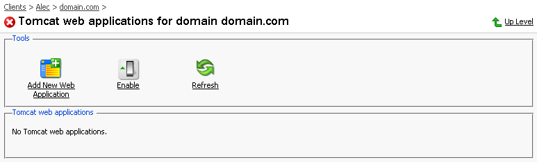 ユーザはPleskインターフェース経由でのみTomcat webアプリケーションの管理が可能です。Tomcatマネージャでのwebアプリケーションの管理は、Plesk Tomcat設定に干渉するため使用できません。