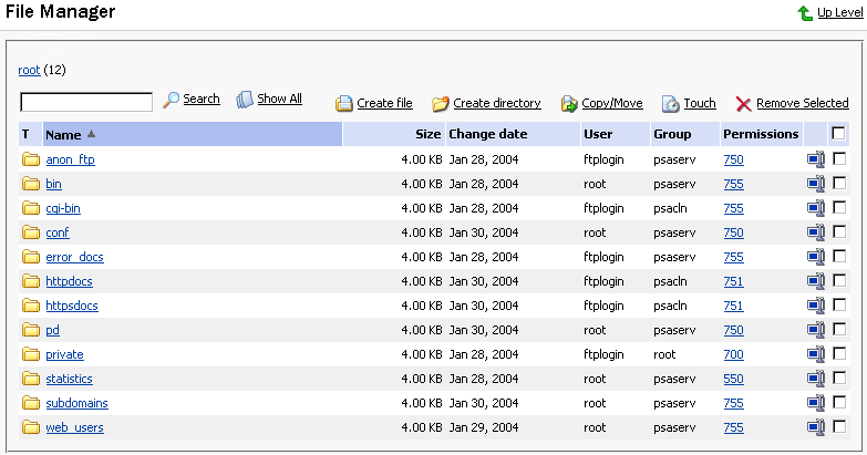 (ファイルマネージャ)アイコンをクリックしてください。rootディレクトリの構造とコンテンツを表示するファイルマネージャページが表示されます。
